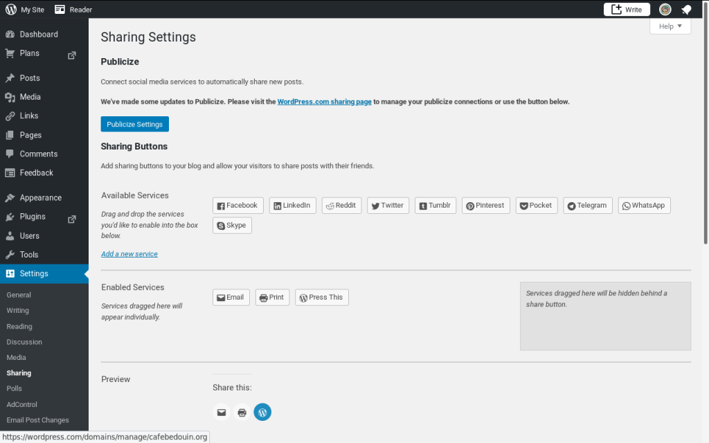 I realized yesterday that the default sharing options in WordPress enabled tracking by Facebook and Twitter. I don’t want advertising or tracking on my site. I found that you can turn these “features” off in the Dashboard.